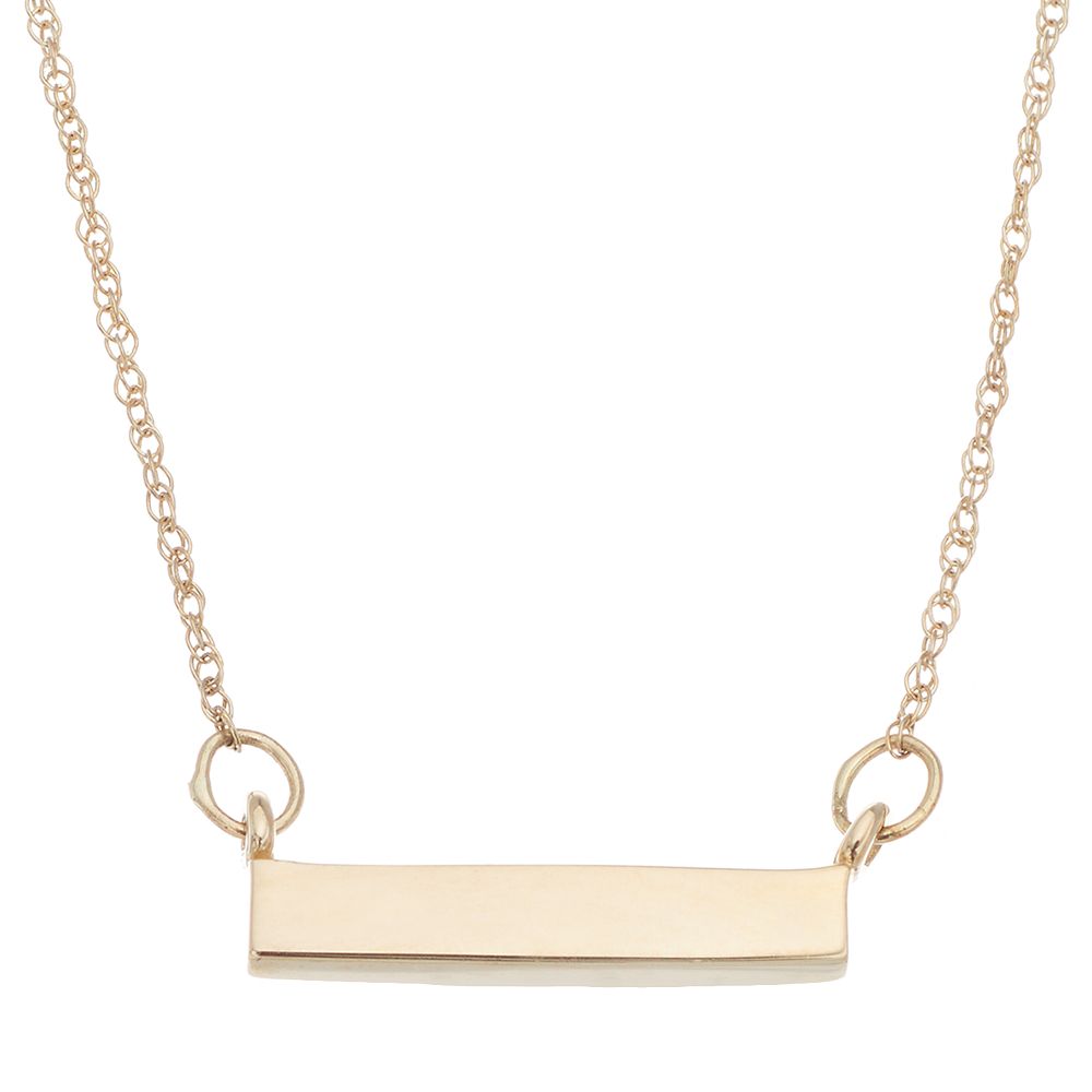 14k solid gold 0,03 ct diamond bar pendant necklace for women, certified fine jewellery gift for valentine's day, 18 inch 3.3 out of 5 stars 22 $149.90 $ 149. Bar is 38 mm wide x 6.3 mm long. Everlasting gold double layer heart & bar necklace sale $270.00. Crafted in warm 10k gold, the 30 x 5mm polished centerpiece features the one uppercase block initial of your choice at one side. As seen on nbc's today show. Chain is 6.32 mm wide x 18 inches long. Worn close to the body and close to the heart, necklaces can be a comforting reminder of love and treasured memories, making them a truly meaningful gift. And don't forget, your 10k gold necklace order may qualify for flexpay, allowing you to buy now and pay later. The fandom shop is bringing you great deals on lots of smiling rocks necklaces including lab grown diamond bar necklace, 1/8 ctw 10k solid gold by smiling rocks (rose. Starting price includes three genuine 2mm birthstones. 2 inch large name necklace 10k gold personalized bold script font initials nameplate jewelry by soul jewelry inc. Heart bar pendant necklace in 10k gold $275.00 $59.99 diamond bonus buy $59.99 diamond bonus buy (14) more like this. Shop hsn for a wide selection of 10k gold necklace from top brands.